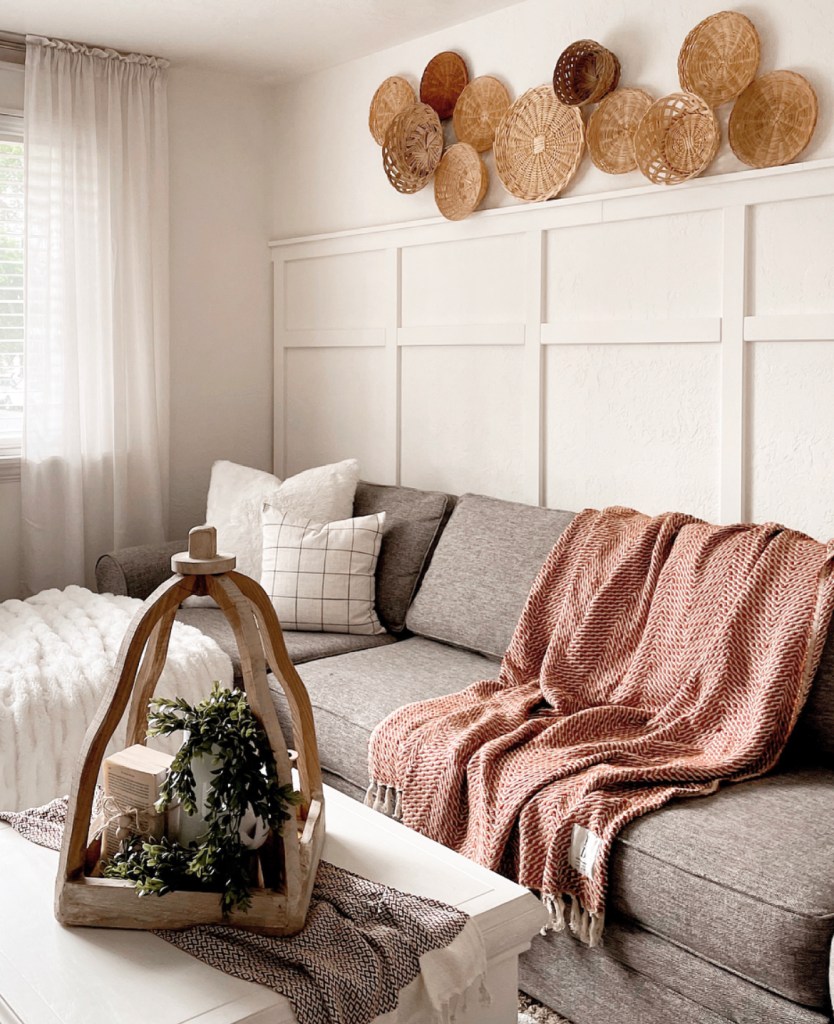 Have you jumped on the boho basket wall train? Have you seen this trend? If you follow any farmhouse / boho accounts on Pinterest or Instagram, chances are you’ve seen it. I’ve been wanting to create a basket wall in my house. It’s a great way to take up empty real estate on a large wall. I just finished a board and batten wall in my living room and really needed something to fill the space above it on a large wall.