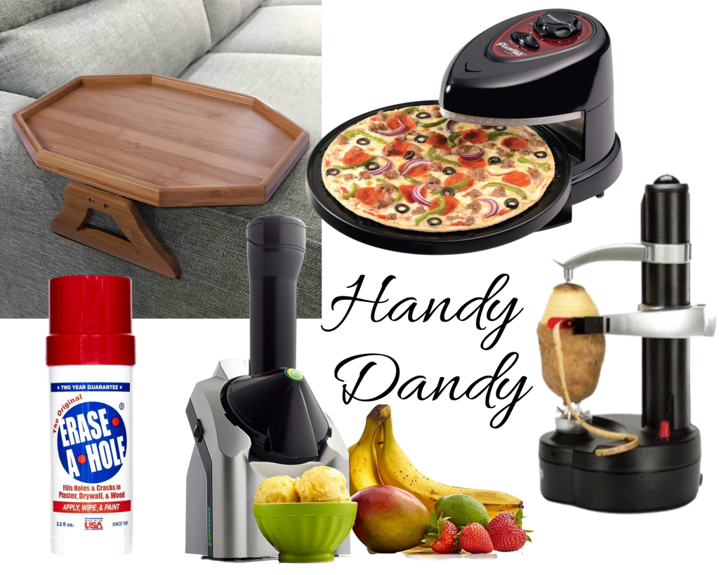 Do you hate peeling potatoes? Then you need this gadget. Love pizza? I’ve got you covered. How about soft serve fruit for dessert? Yep…there’s a product for that. Now maybe you need somewhere to sit your soft serve fruit and pizza, this tray that fits on the arm of your couch will be perfect. But my personal favorite…Erase-A-Hole! Where has this been all my life? As a decorator that loves to change things often, this is a game changer. And yes, I already ordered some.
