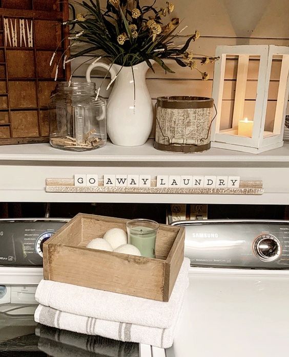 Decorating a small laundry space for the different seasons. And making the space both pretty and functional.