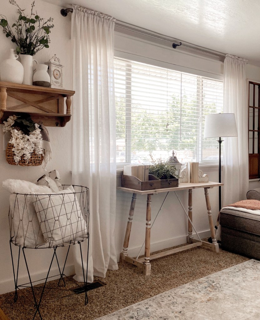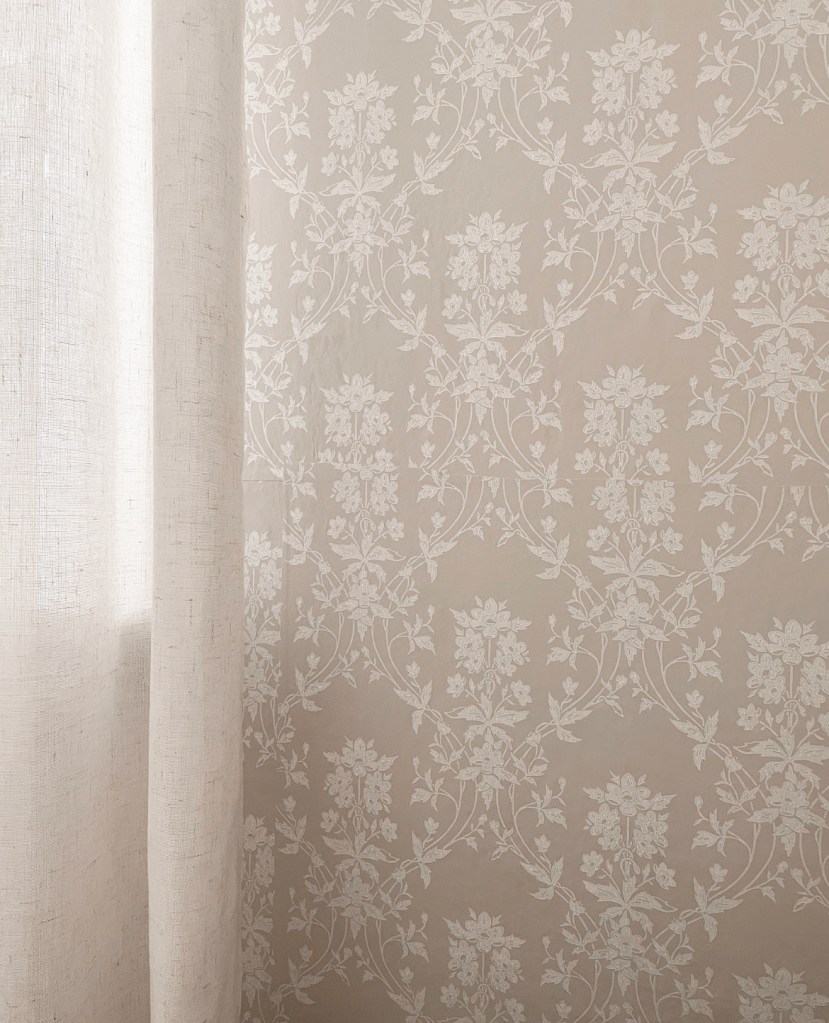 I’ve been wanting to add wallpaper somewhere in my house for quite some time. I knew I wanted something that was neutral and not too busy looking. I had been searching online for awhile when I came across http://www.sandbergwallpaper.com and was instantly pulled in. They have the most beautiful patterns with a farmhouse, Scandinavian vibe. I picked a floral print in light beige with creamy white flowers. The pattern is called Alva Sandstone. I absolutely love how it turned out. I chose to put it on a wall in my living room that also has a huge window. The wall needed something and I think this wallpaper was definitely the right choice. Not that the wall was ugly. It just needed a little oomph. 🙂