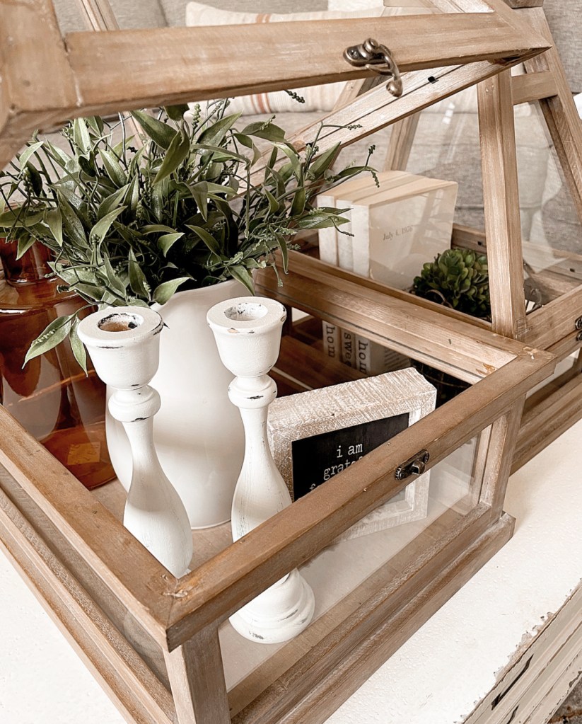 Happy Sunday! Are you all ready for a new week? We had a pretty relaxing day today but our Saturday was filled with birthday celebrations for my niece, family time and fireworks. Oh and restyling my coffee table with these new terrariums. My coffee table is usually filled with remotes, my laptop, video game controllers, etc. But just because our coffee table serves a functional purpose doesn’t mean it can’t also look beautiful. I like to change up the decor on my coffee table frequently. Sometimes it’s just a simple vignette and other times it makes a big statement. I love how these new terrariums from Decor Steals look styled on my coffee table. Funny story…my cousins 3 year old little boy saw them yesterday before I had had a chance to style them and he asked me why they were empty. I asked him what he thought I should put in them and he handed me some little plastic army guys. How cute is that? And although I loved his idea, I decided on something a little more my style.