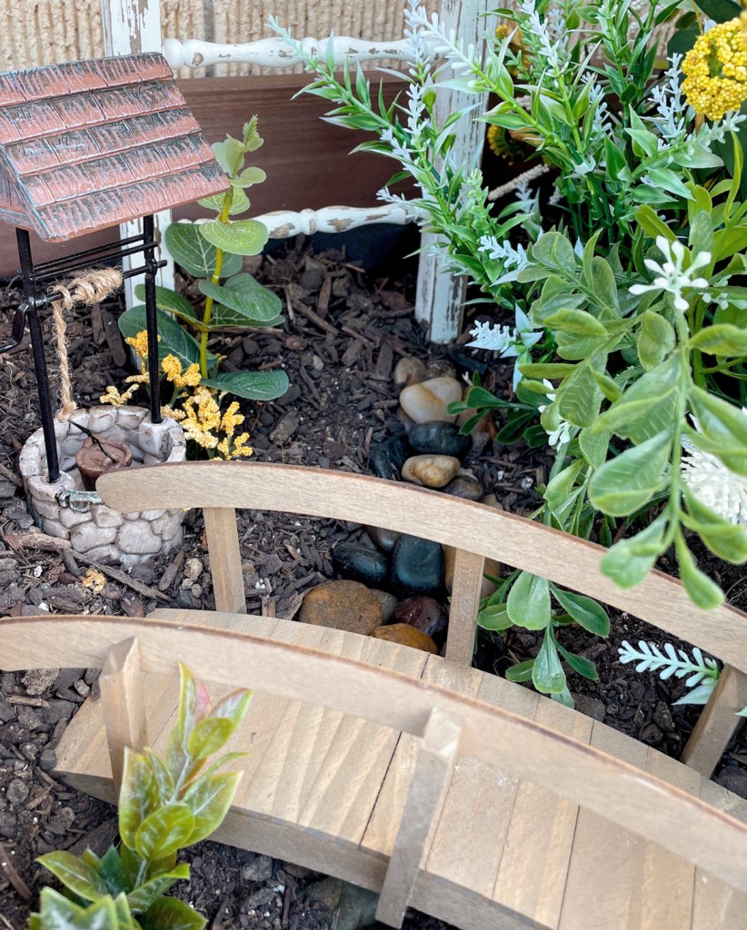 Happy Friday sweet friends. Yesterday was my Grandpa’s birthday. If he were still with us, he would have turned 100. Sadly we lost him in January of 2003 after a losing battle with colon cancer. I was close to my grandpa and I miss him dearly. He was a great man with many talents. But I think the thing I remember the most was his love and passion for gardening. So much so that he took care of a lot of his neighbors yards just because he wanted to. No other reason. He had the most beautiful gardens. He could grow anything. But roses were definitely his specialty. Why am I telling you this? Well because it’s one of the things I wish I’d inherited from him. But sadly I lack all the skills needed to grow anything in dirt. Haha. But I had this adorable garden box that was in need of something. A fairy garden sounded fun and like something I could involve my niece and nephew in.