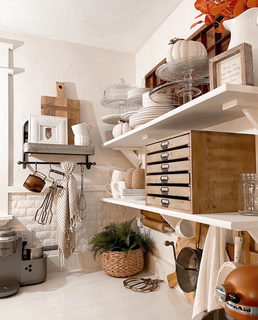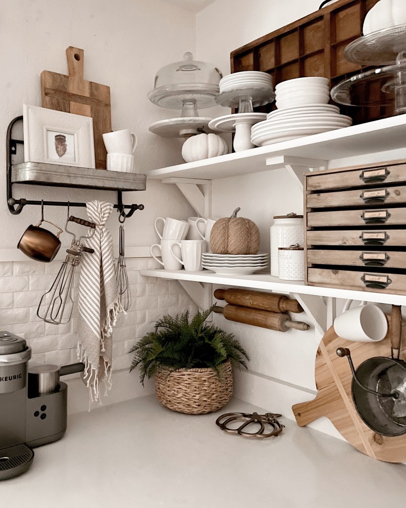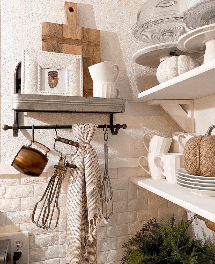 Happy Friday! We made it to another weekend. I’m working on a fun project this weekend and I can’t wait to share all the details soon. And I did something crazy that I will also share soon. But today, let’s talk farmhouse kitchen staples. When you think farmhouse kitchen what comes to mind? For me it’s open shelving, apron sinks, woods and whites and vintage pieces. I recently added a super cute vintage inspired cookhouse towel rack from Decor Steals in my kitchen and I love it.
