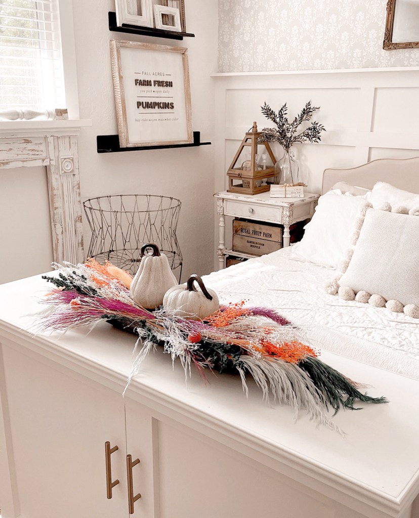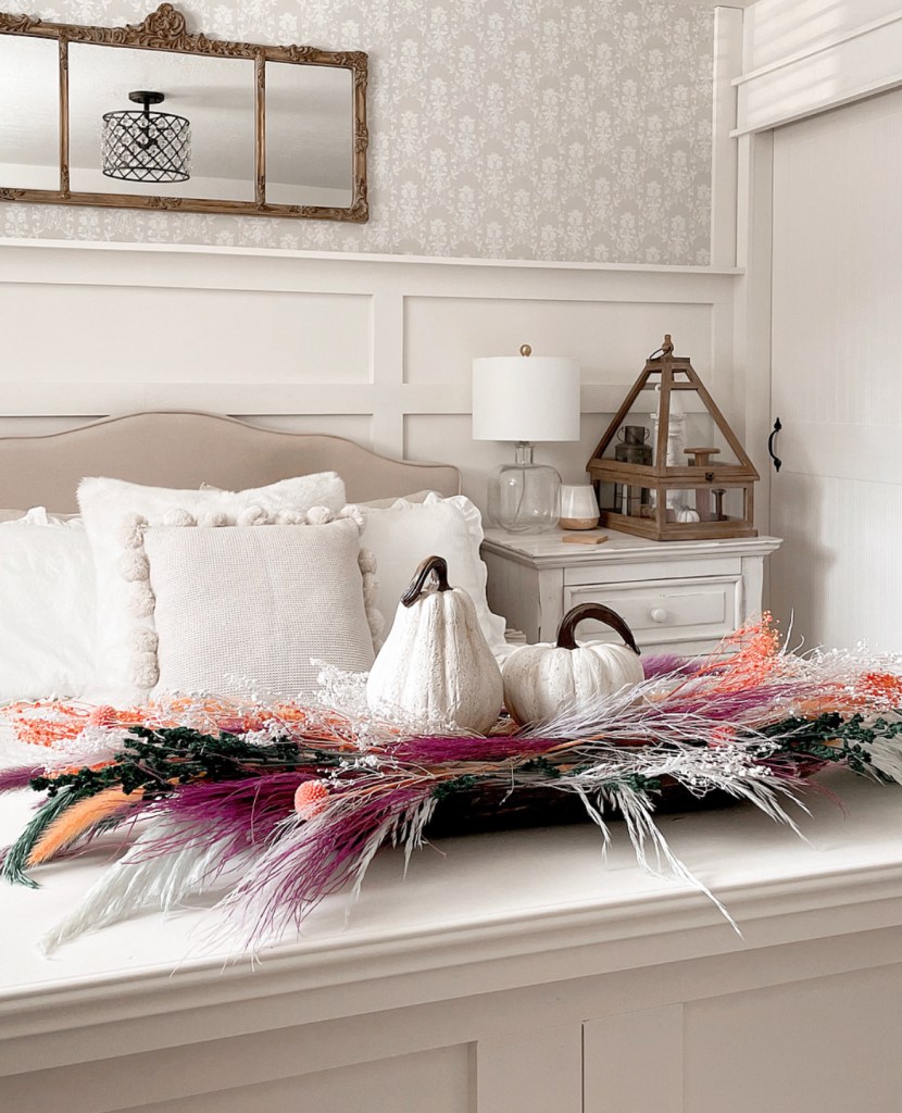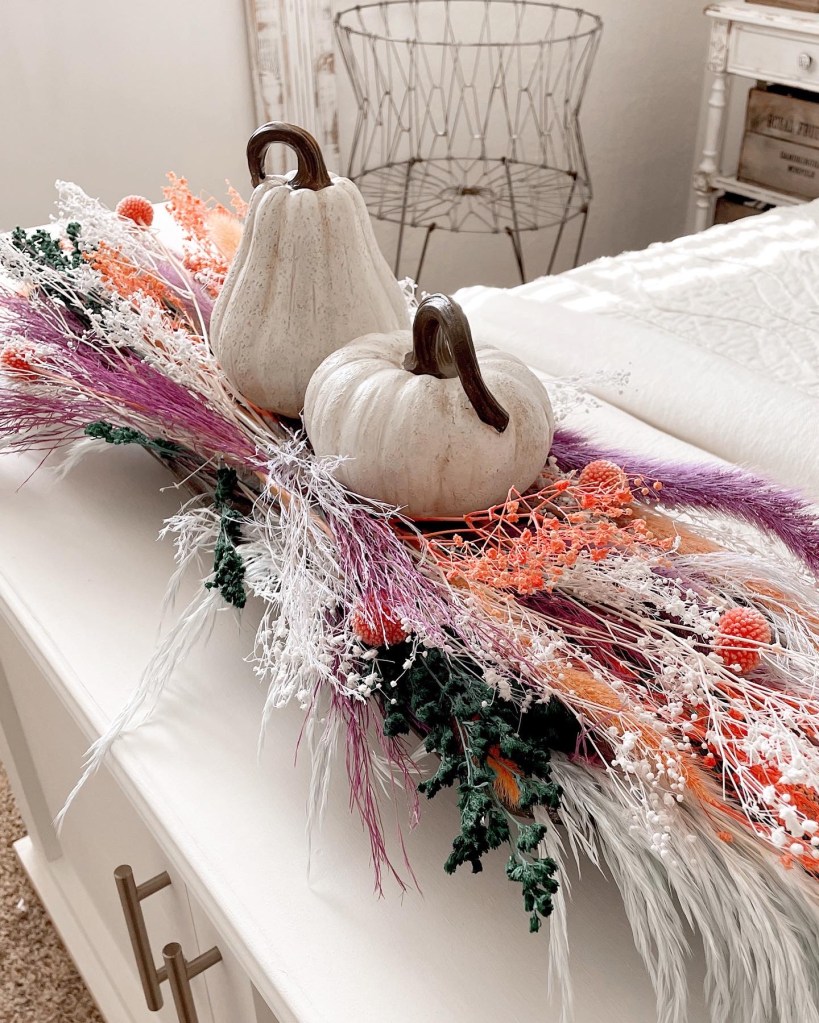 This particular arrangement from Bloomsy Box was gifted to me and it’s called Fantasia. They have other preserved floral arrangements too. As well as fresh floral bouquets. I added pumpkins to stick with the Fall theme but I think this arrangement would work perfectly for other seasons and holidays.