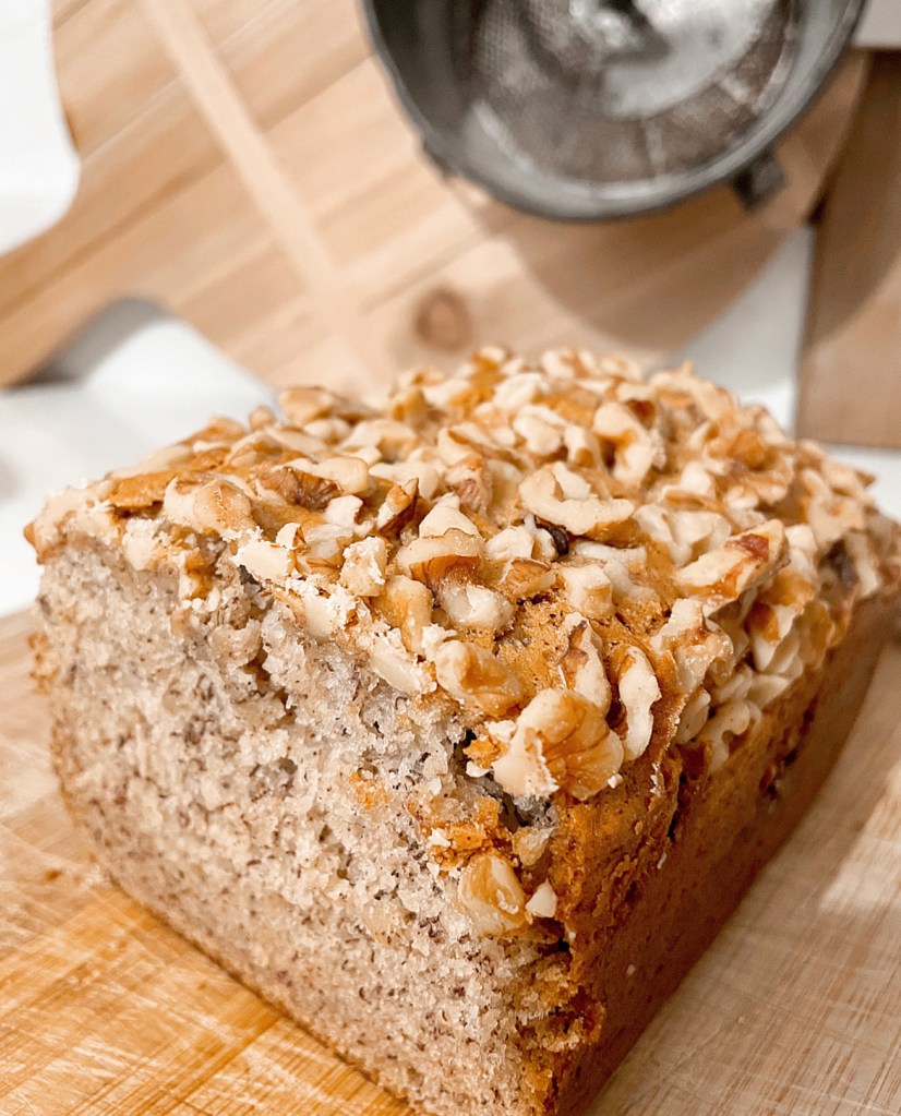 I definitely think the key to this bread is the walnuts on top. But if you have an allergy or just don’t like nuts it’s super easy to omit them without losing any flavor. I use my Kitchenaid mixer when making this bread but it would be just as easy with a handheld mixer or even just a whisk and spoon.