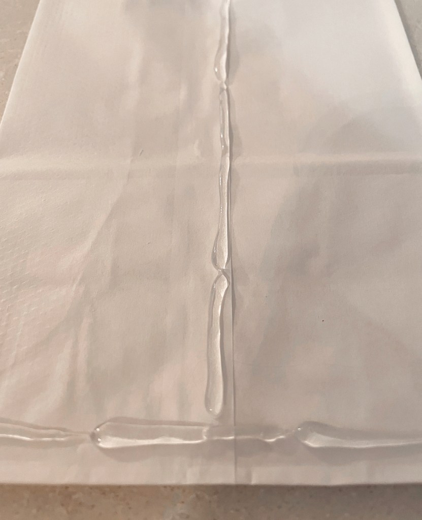 Now onto the fun part. Add another T shape of glue on the top bag and then fan the bags open and glue the top bag to the bottom bag.