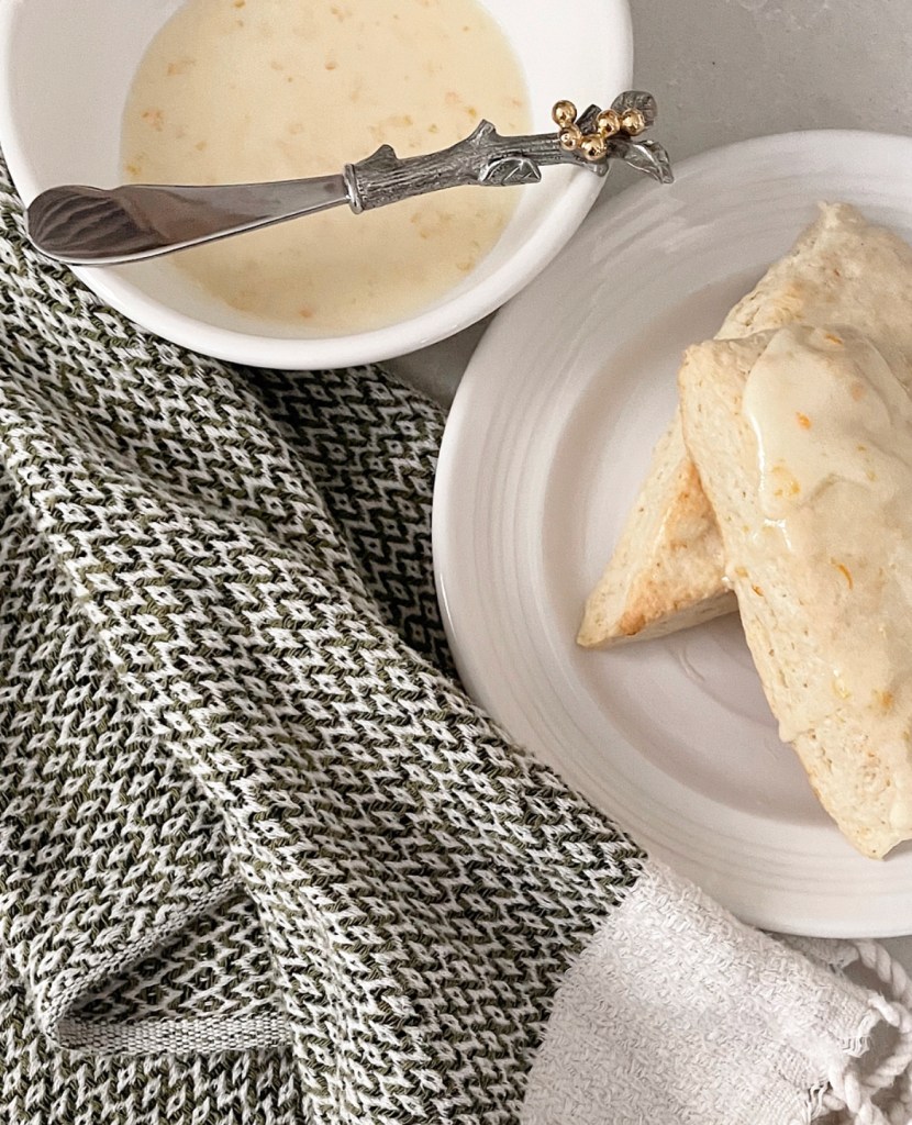 These scones are one of my favorite go to recipes when I’m craving something sweet. Especially on weekend mornings. They are so delicious and super easy to make. And how cute is that winter berry spreader? It’s from Vagabond House. I have a few of their houseware items. They are all so pretty and such amazing quality. But let’s get to making scones, shall we?