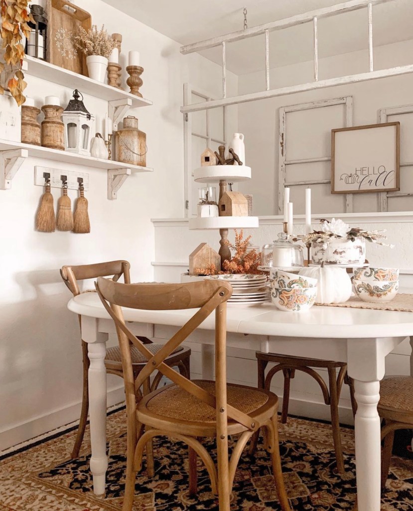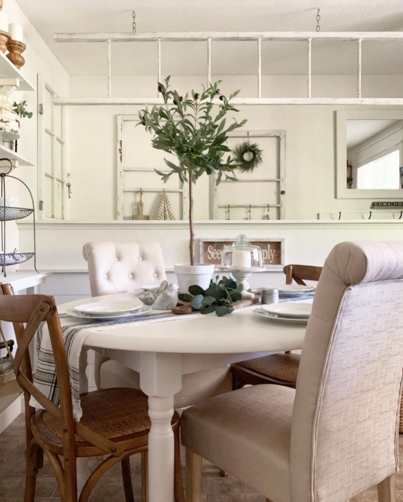 I think this was one of my favorites. I’m not sure why I ever changed this. The table was a thrifted find. The wood chairs are from Poly & Bark and the fabric ones I found on Overstock. I love how cozy this looks. And then came 2020.