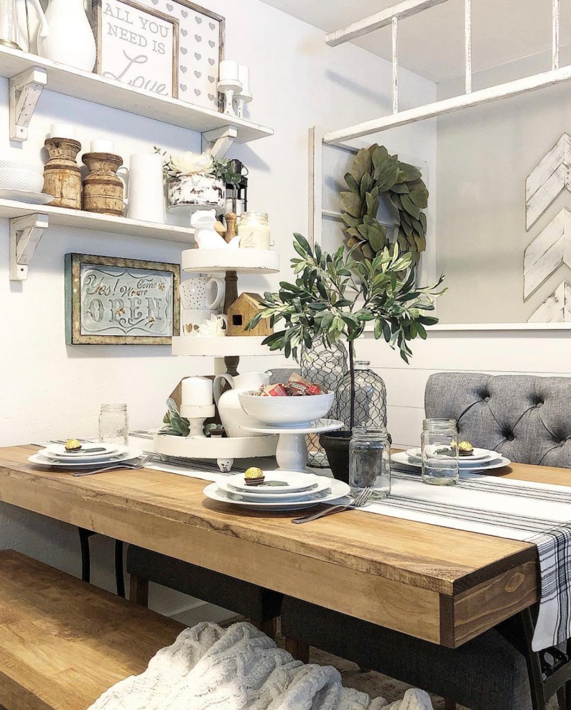 I actually really loved this look. My hubby and I made the bench and we were so proud of it. The table was from World Market and the chairs were from Overstock. You can also see a peek of my thrifted hutch. Moving on to 2018…
