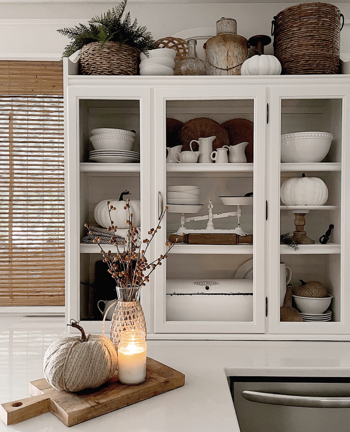 Repurposed Hutch With Simple Fall Decor