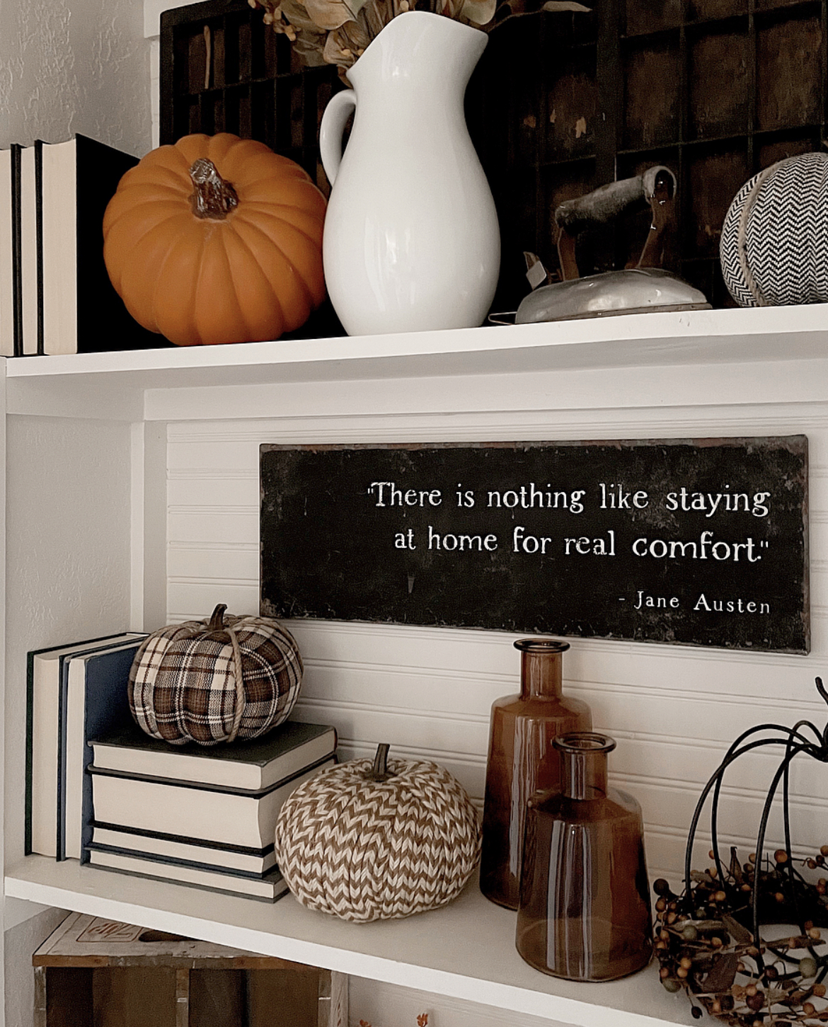 Fall Styled Hallway Shelves
